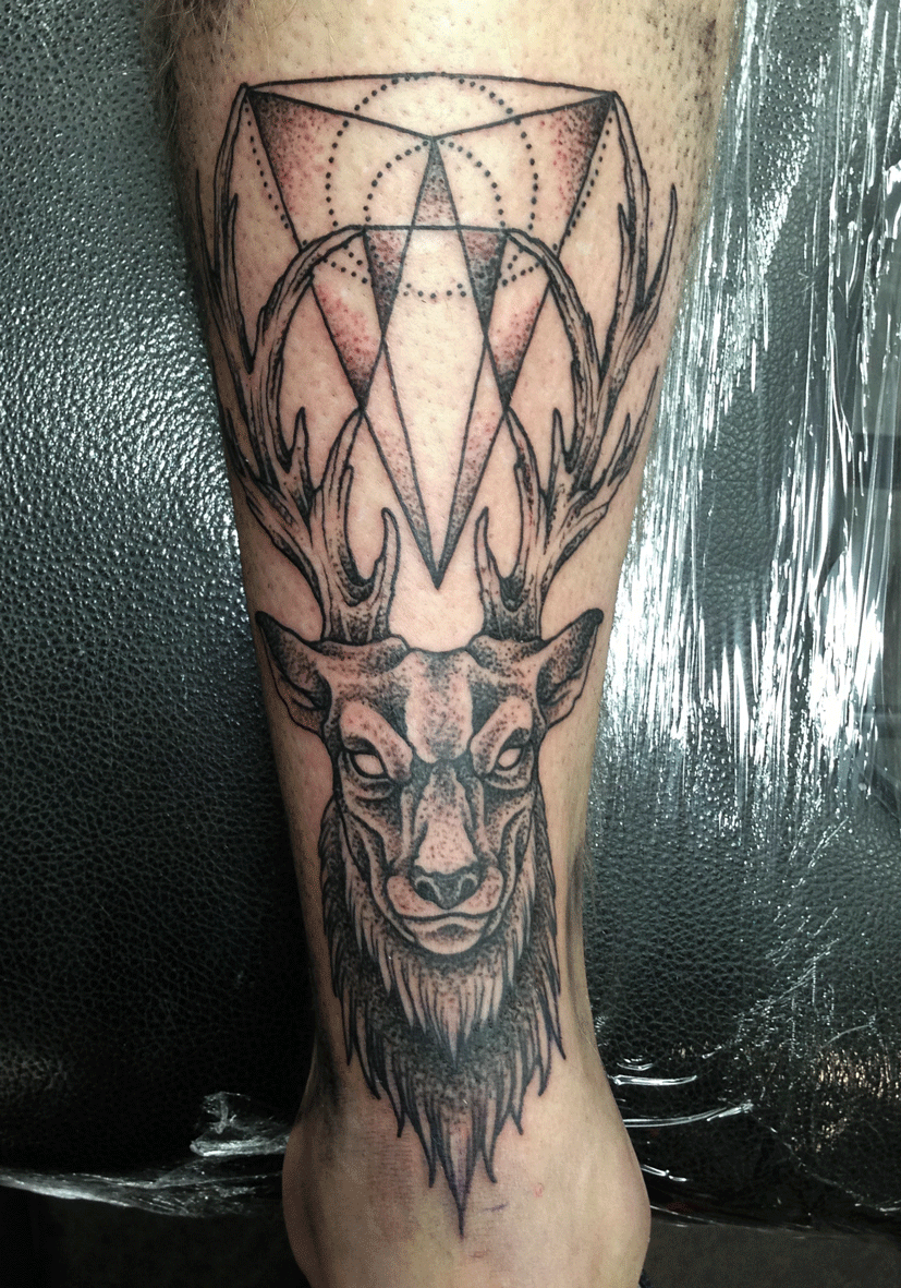 » mark-lonsdale-tattoo-sydney-bondi-deer-stag-geometric-lines-dots