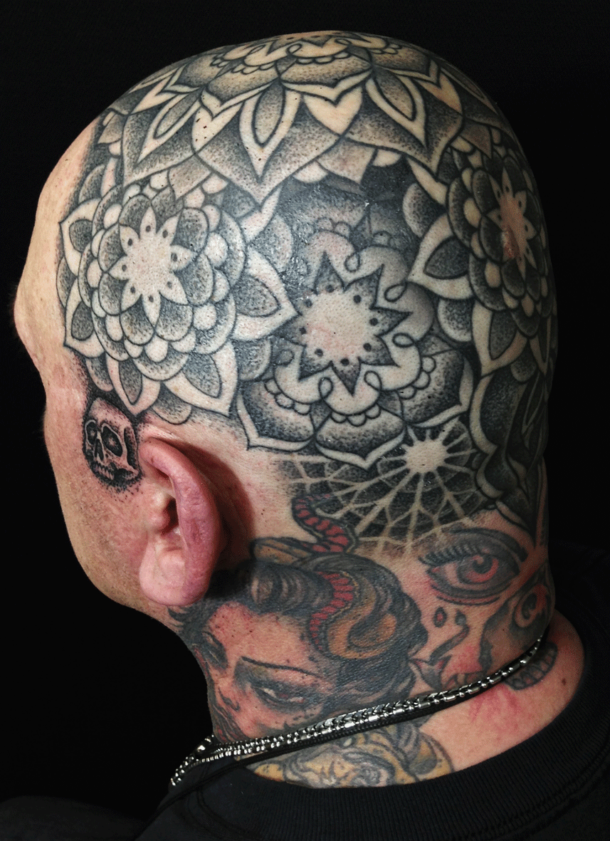 » mark-lonsdale-tattoo-sydney-bondi-full-head-mandala-dotwork-geometric-black-and-grey