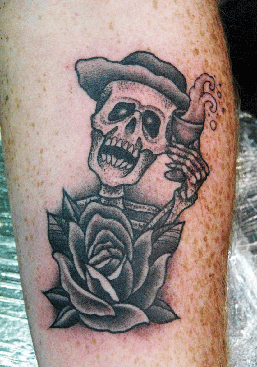 » mark-lonsdale-tattoo-sydney-bondi-skeleton-rose-drinking-dot-work-dotwork-stippling-black-and-grey