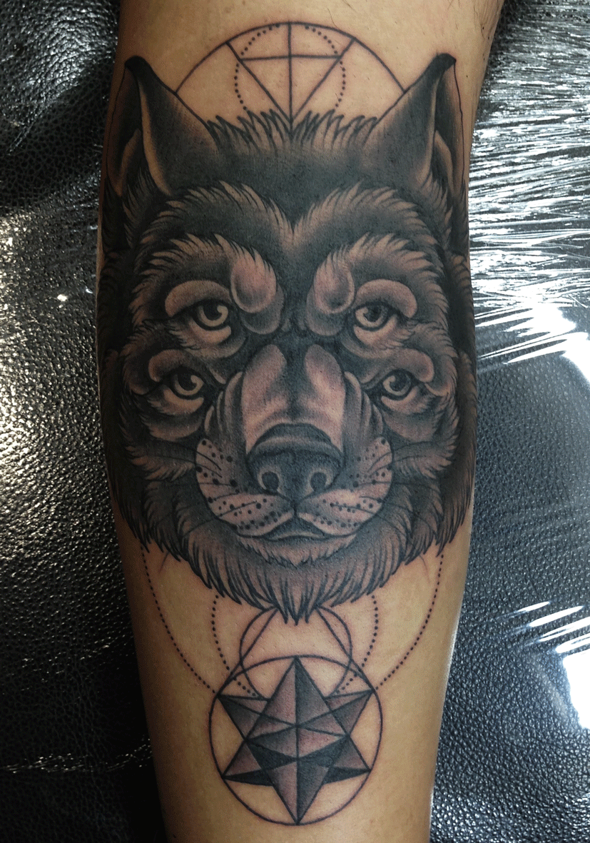 » mark-lonsdale-tattoo-sydney-bondi-wolf-eyes-dots-lines-geometric-star-black-and-grey