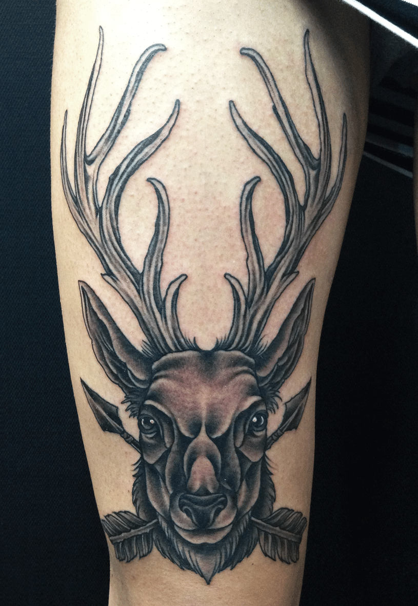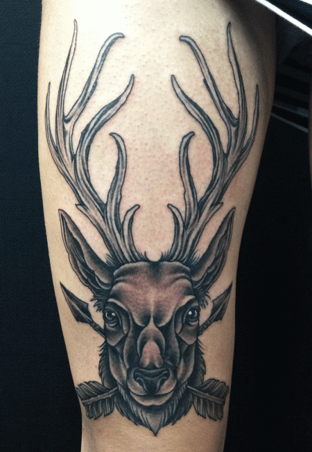 » mark-lonsdale-tattoo-sydney-deer-arrows-black-and-grey-antlers